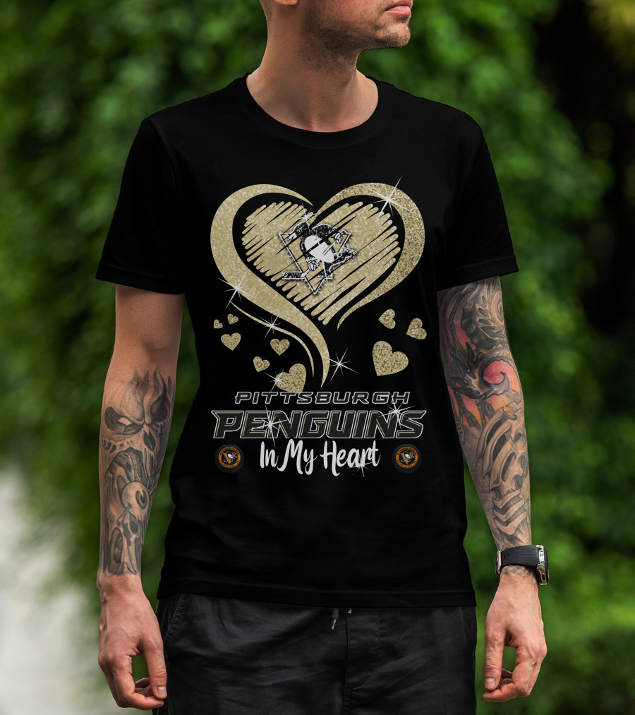Pittsburgh Penguins Heart Logo Glitter In My Heart T-Shirt