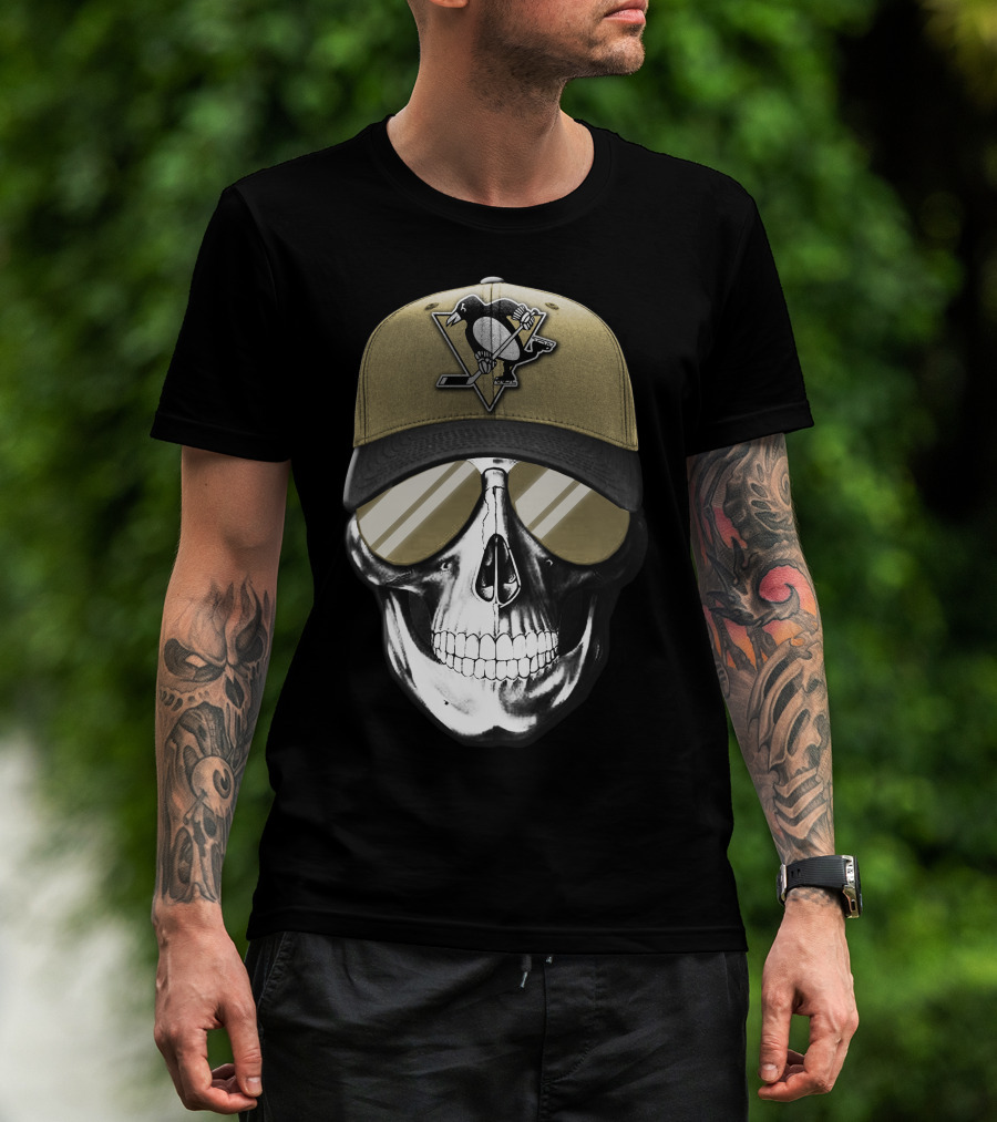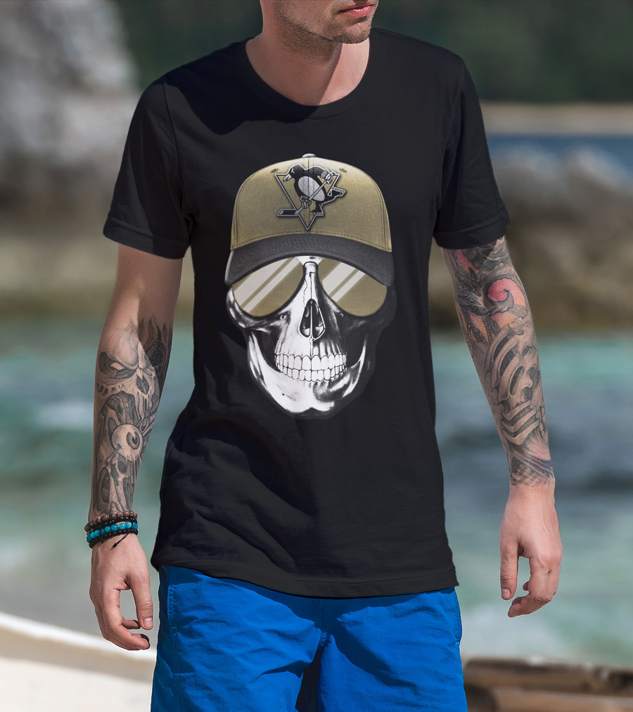 Pittsburgh Penguins Skull Hat Hockey Fan T-Shirt