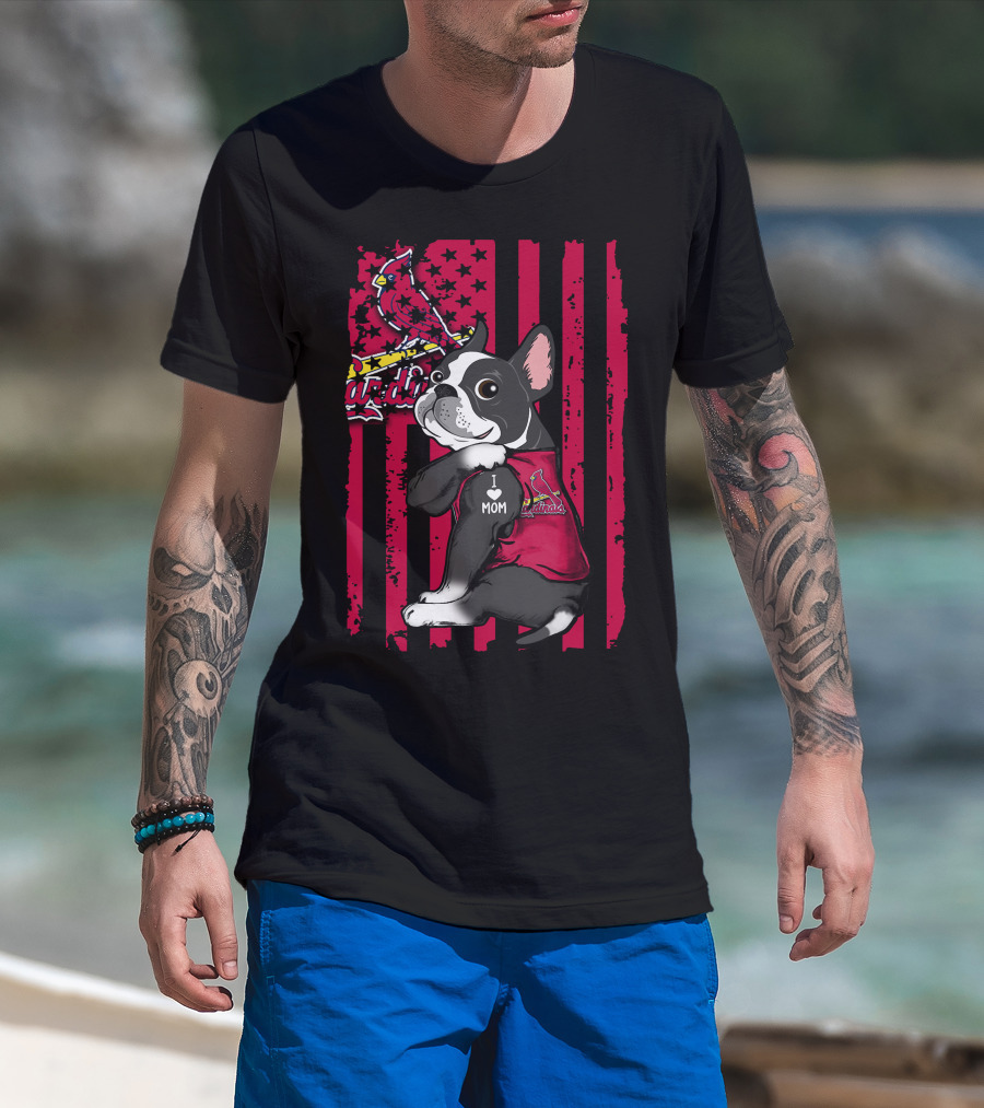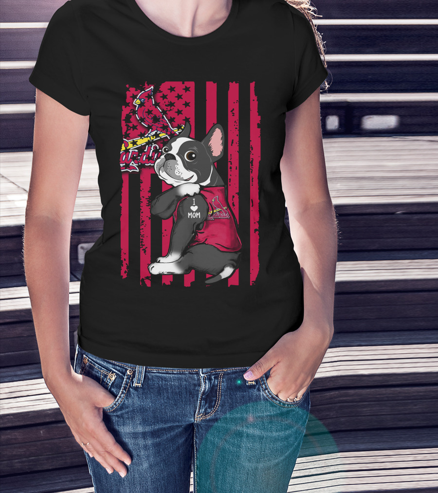 Boston Terrier I Love Mom St. Louis Cardinals T-Shirt