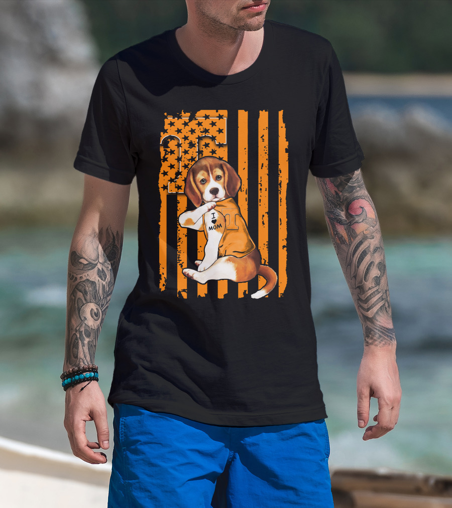 Beagle Tennessee Volunteers I Love Mom Stripes Orange Black T-Shirt