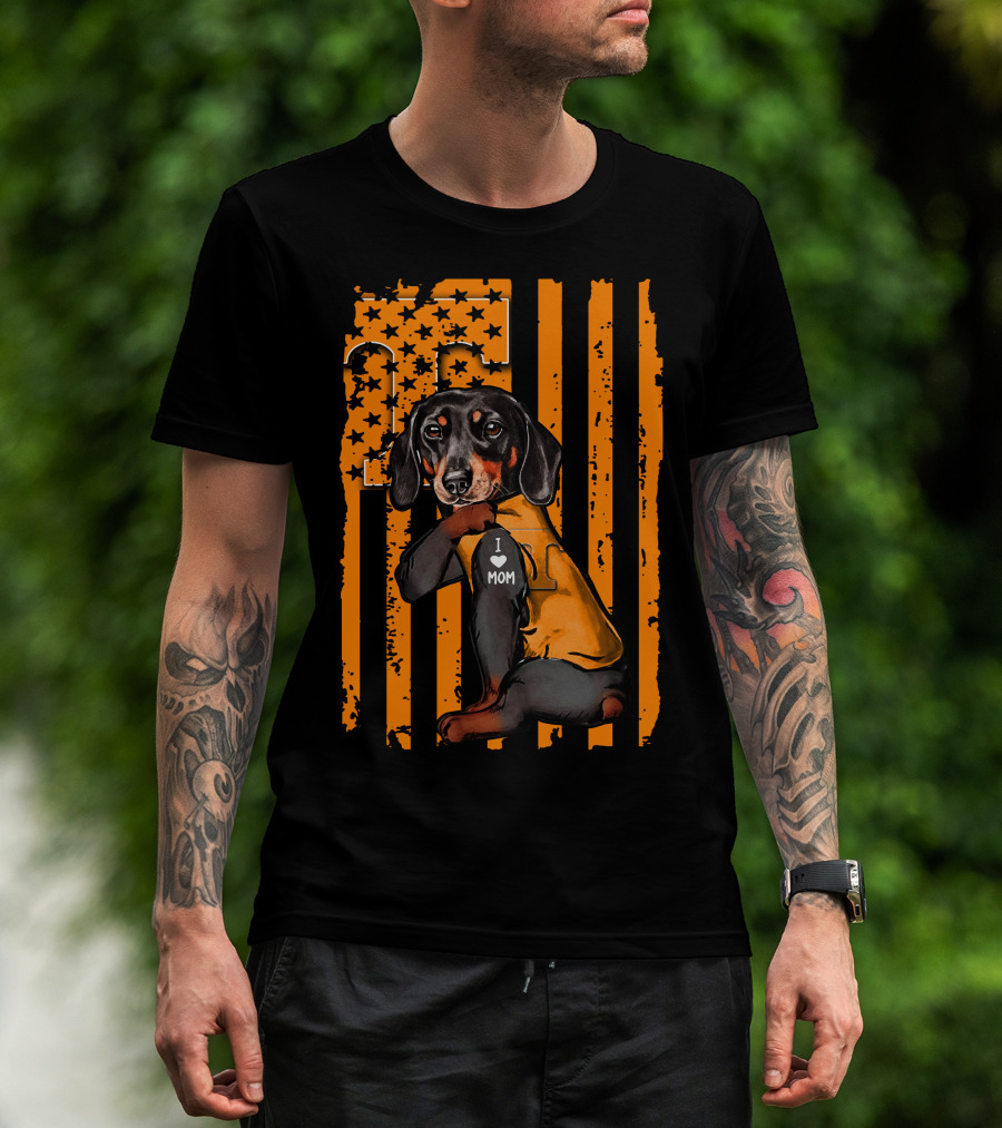 Dachshund In Tennessee Volunteers Gear With I Love Mom Message T-Shirt