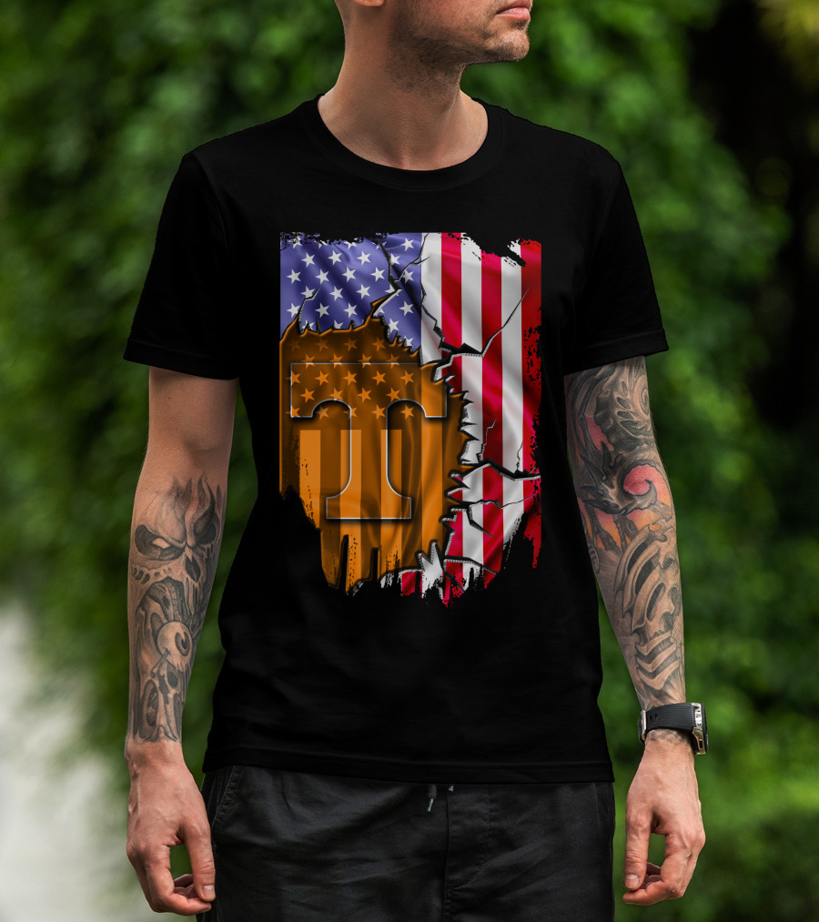 The American Flag Tennessee Volunteers T T-shirt is designed for everyday wear and a consistent fit. Fabric is pre-shrunk ring-spun cotton with durable stitching. See the size chart below for exact measurements.