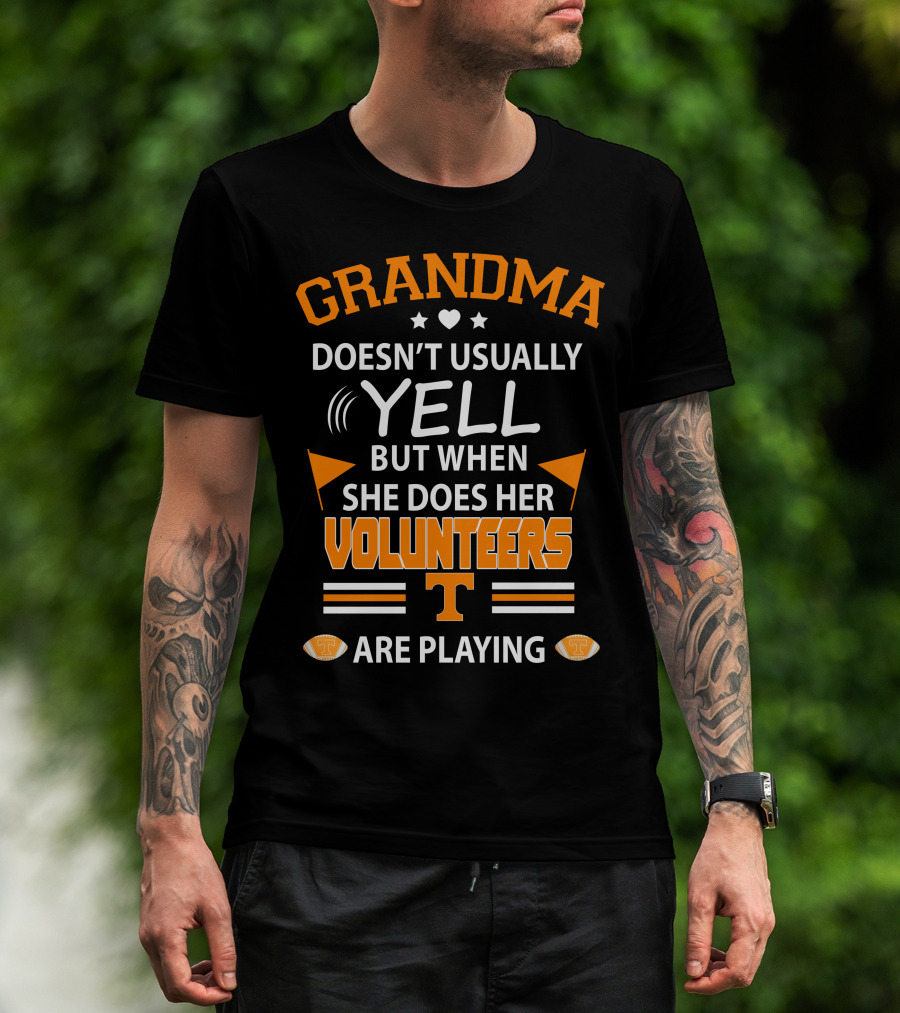 The Grandma Doesn't Usually Yell But When She Does Her Volunteers Are Playing T-shirt is designed for everyday wear and a consistent fit. Fabric is pre-shrunk ring-spun cotton with durable stitching. See the size chart below for exact measurements.
