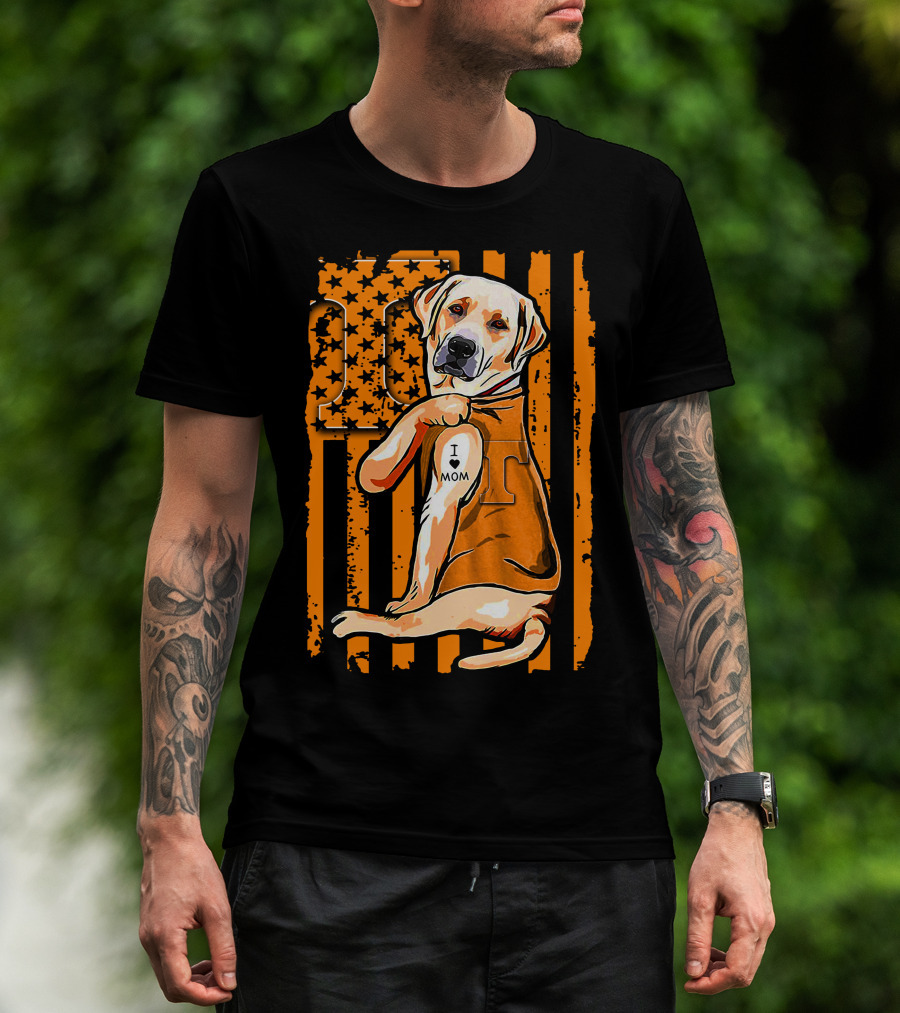 The Labrador Retriever I Love Mom Tennessee Volunteers T-shirt is designed for everyday wear and a consistent fit. Fabric is pre-shrunk ring-spun cotton with durable stitching. See the size chart below for exact measurements.