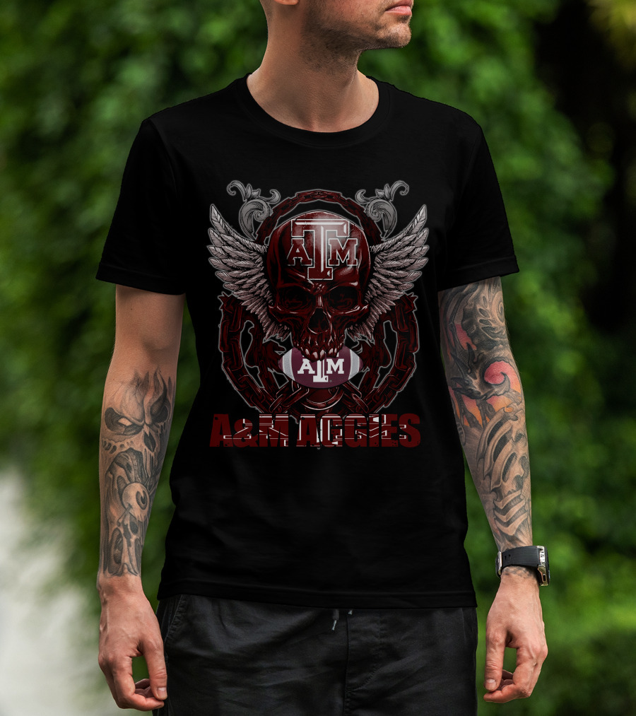 Skullfb A&M Aggies Football Skull Wings T-Shirt