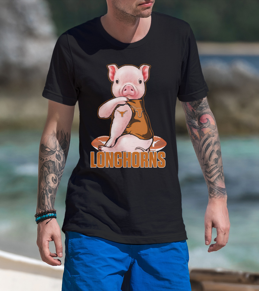 Pig In Texas Longhorns Jersey With Footballs T-Shirt