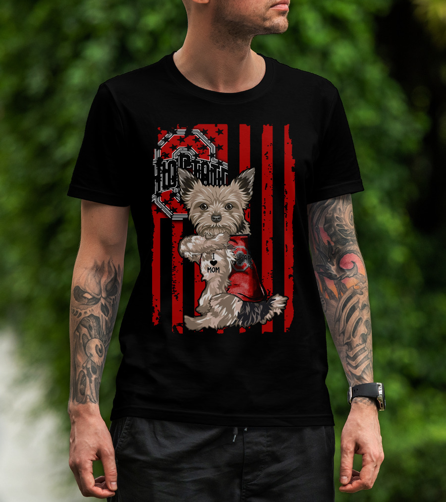 Yorkshire Terrier Ohio State Buckeyes I Love Mom T-Shirt