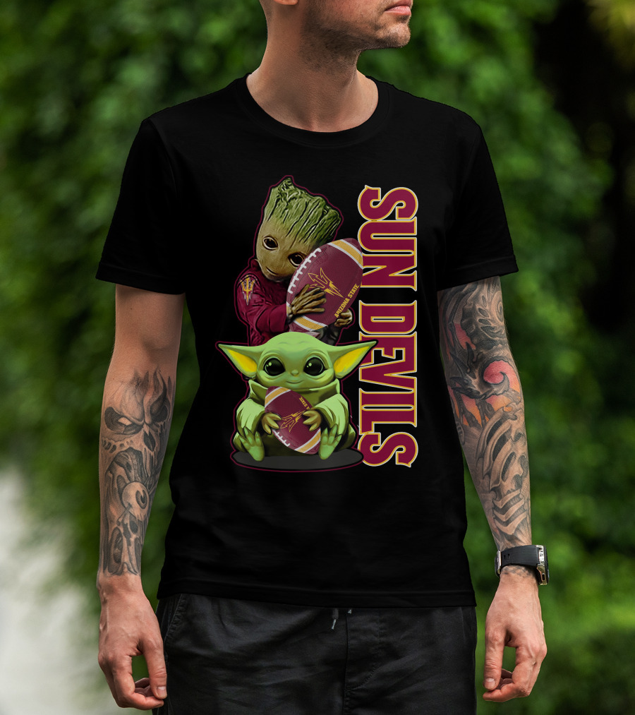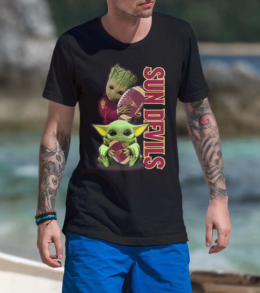 Grzd Sun Devils Football Groot And Baby Yoda Fan T-Shirt
