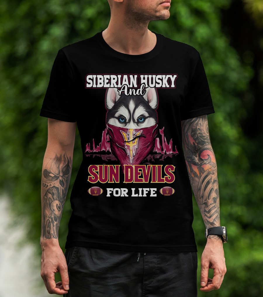 The Siberian Husky and Sun Devils for Life T-shirt is designed for everyday wear and a consistent fit. Fabric is pre-shrunk ring-spun cotton with durable stitching. See the size chart below for exact measurements.