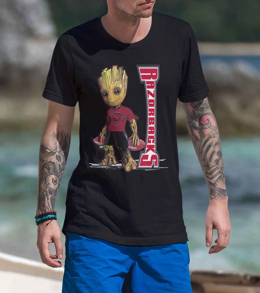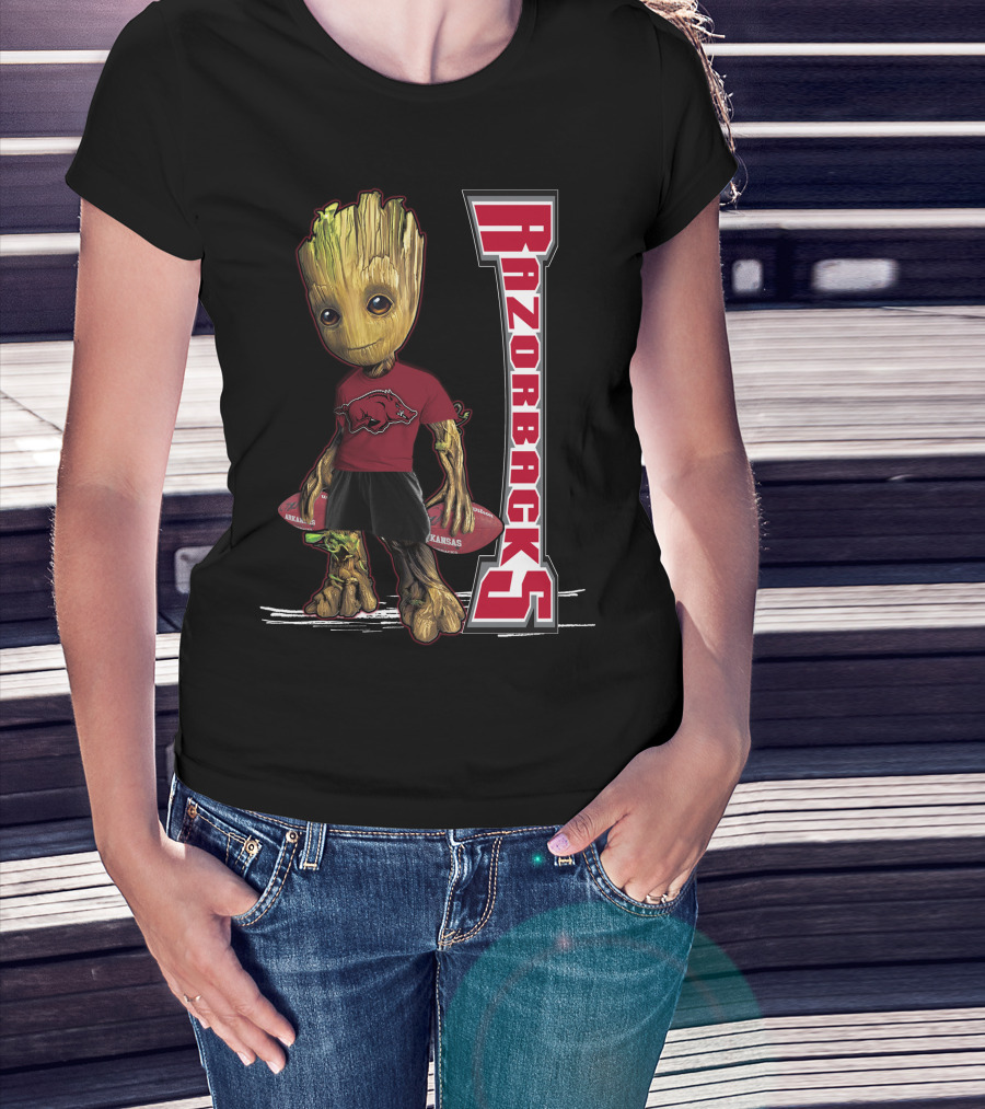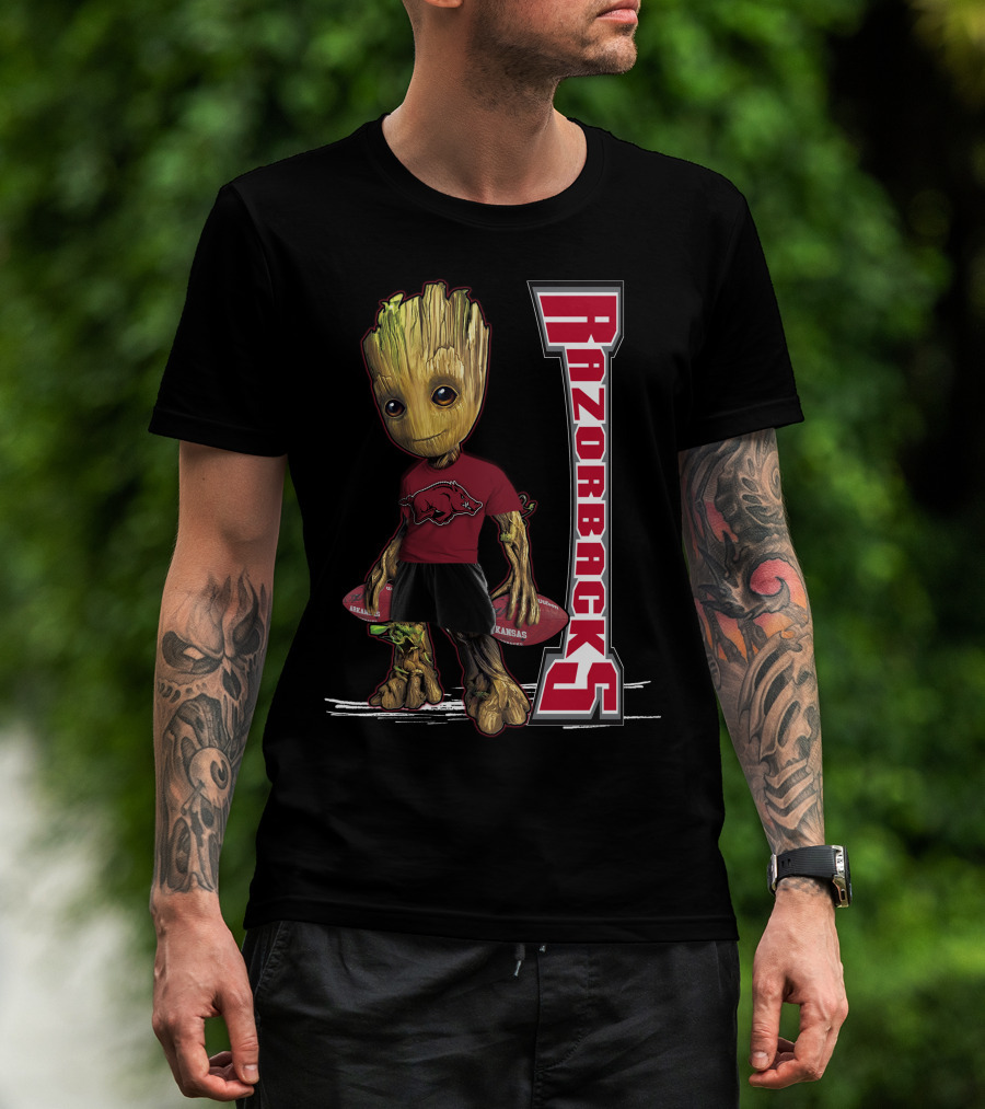Groot Arkansas Razorbacks Football Character With Team T-Shirt