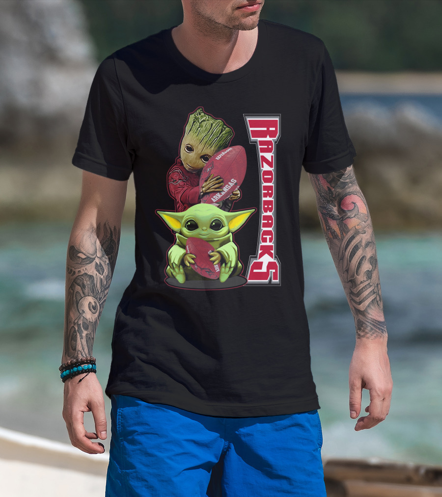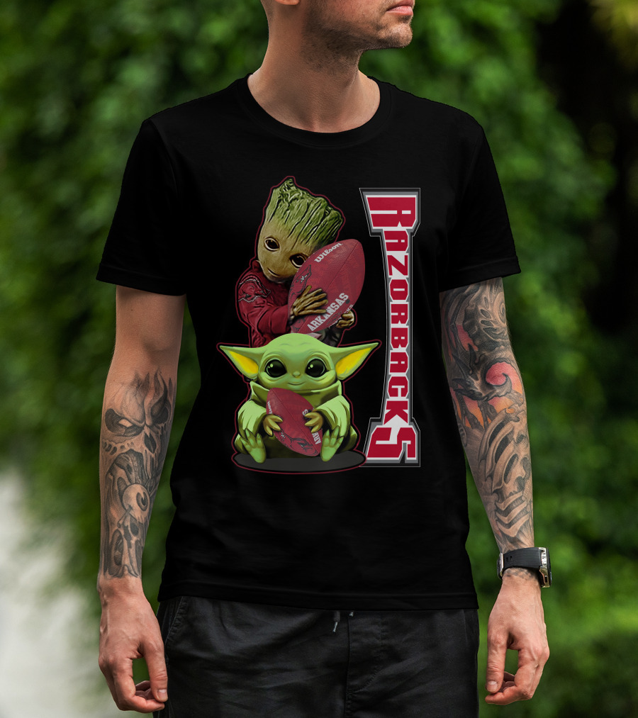 Grzd Arkansas Razorbacks Groot And Baby Yoda Football Fans T-Shirt