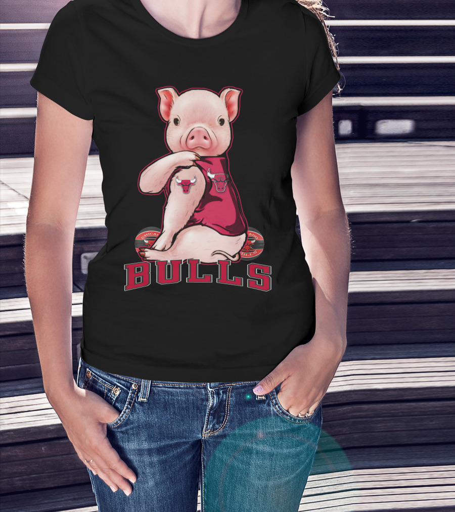 The Pig with Chicago Bulls Logo on Jersey and Bulls Emblem T-shirt is designed for everyday wear and a consistent fit. Fabric is pre-shrunk ring-spun cotton with durable stitching. See the size chart below for exact measurements.