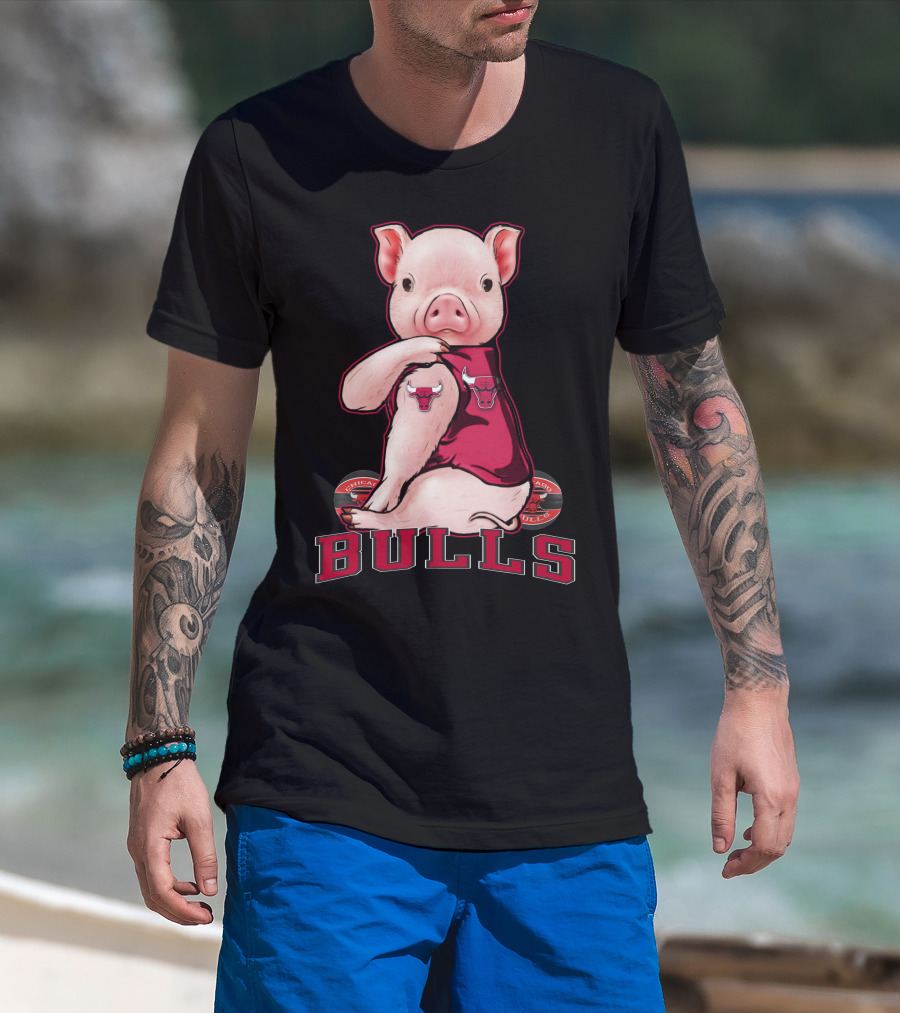 Pig With Chicago Bulls Logo On Jersey And Bulls Emblem T-Shirt