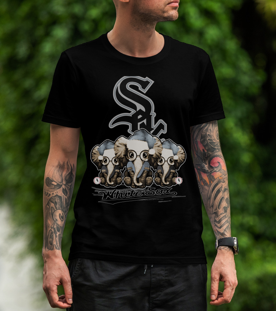 The Chicago White Sox Festive Elephant Trio Christmas T-shirt is designed for everyday wear and a consistent fit. Fabric is pre-shrunk ring-spun cotton with durable stitching. See the size chart below for exact measurements.