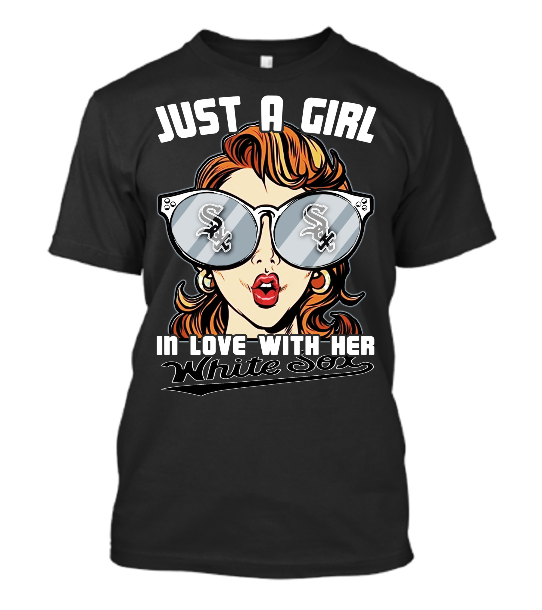 The Just a Girl in Love with Her White Sox T-shirt is designed for everyday wear and a consistent fit. Fabric is pre-shrunk ring-spun cotton with durable stitching. See the size chart below for exact measurements.