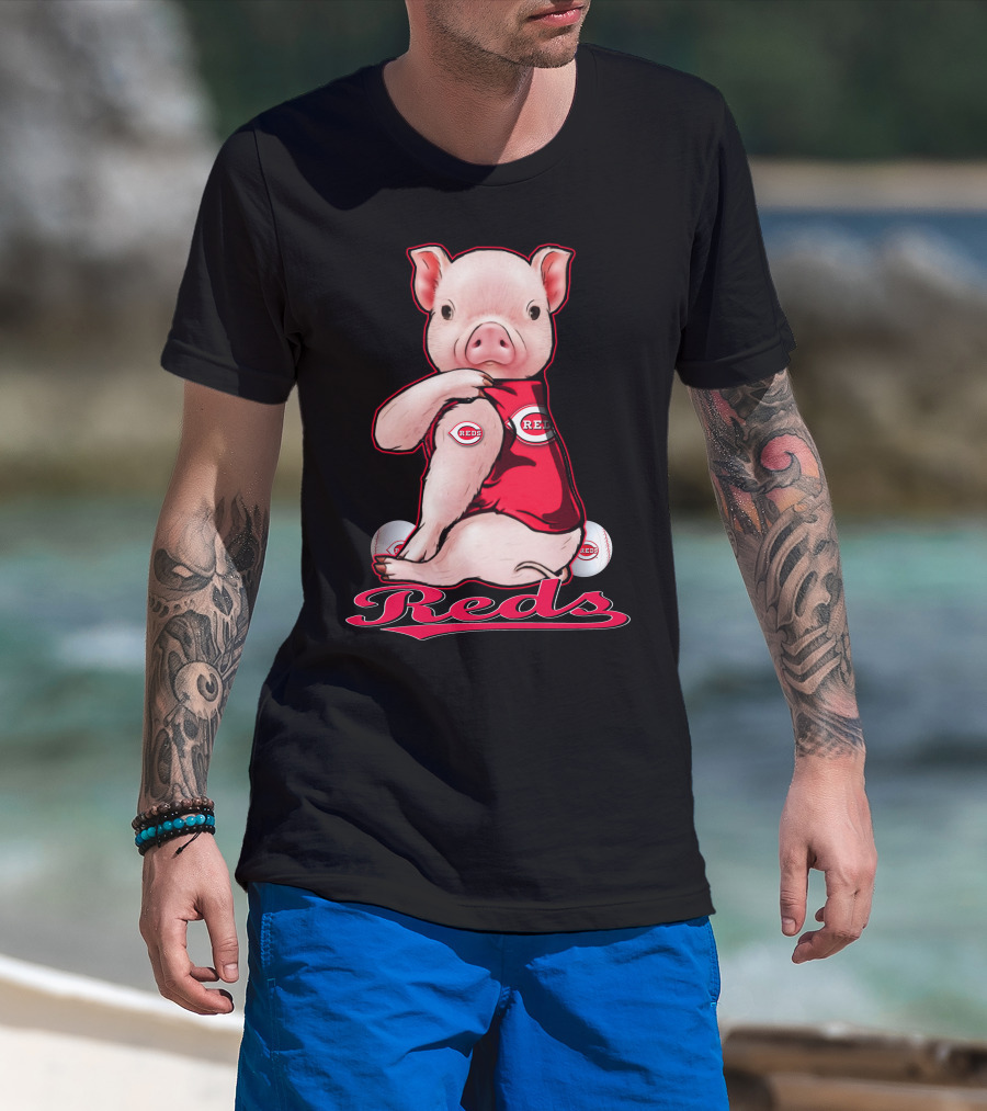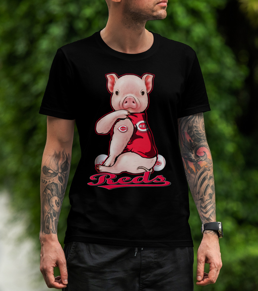 The Cincinnati Reds Pig Baseball T-shirt is designed for everyday wear and a consistent fit. Fabric is pre-shrunk ring-spun cotton with durable stitching. See the size chart below for exact measurements.