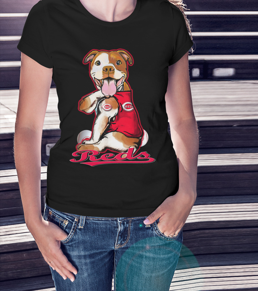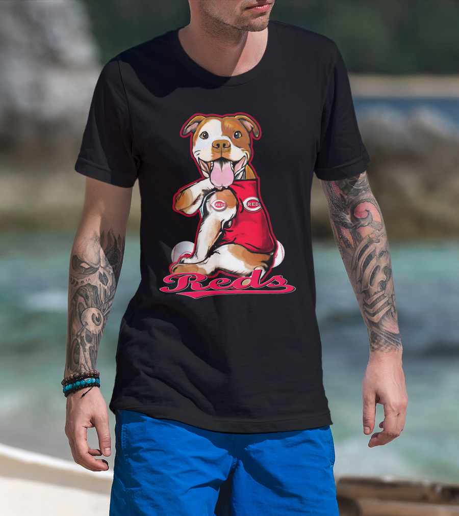 Pittbull Wearing Cincinnati Reds Jersey With Baseballs T-Shirt