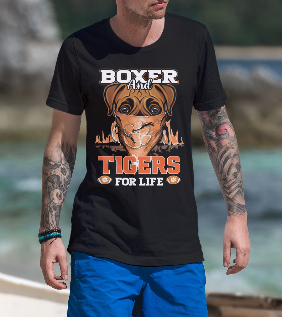 The Boxer and Tigers for Life Clemson T-shirt is designed for everyday wear and a consistent fit. Fabric is pre-shrunk ring-spun cotton with durable stitching. See the size chart below for exact measurements.