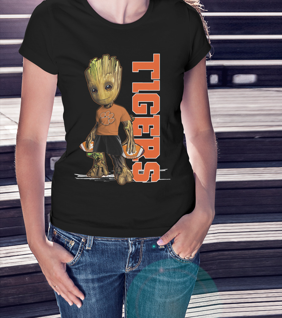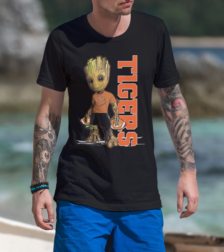 The Groot Clemson Tigers Football Fan Marvel Groot and Clemson University Sports Fan Gear T-shirt is designed for everyday wear and a consistent fit. Fabric is pre-shrunk ring-spun cotton with durable stitching. See the size chart below for exact measurements.
