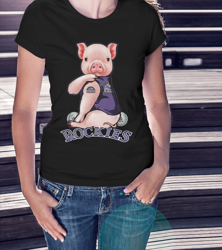 Pig Wearing Colorado Rockies Jersey With Baseballs And Rockies T-Shirt