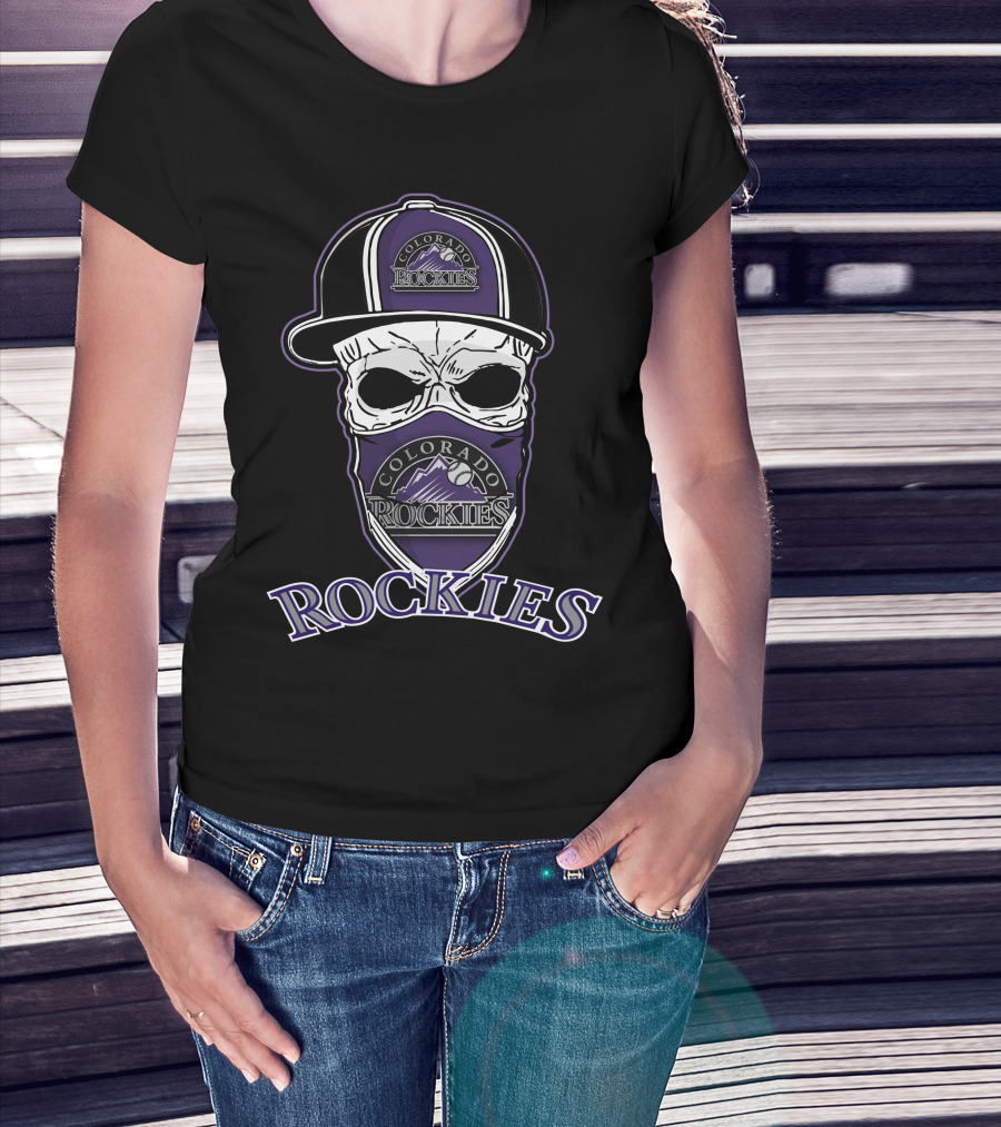 Colorado Rockies Skull With Hat And Bandana T-Shirt