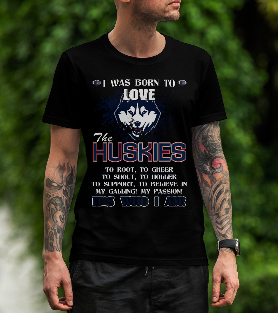 Born To Love The Huskies It's Who I Am Connecticut Passion Shout Believe T-Shirt