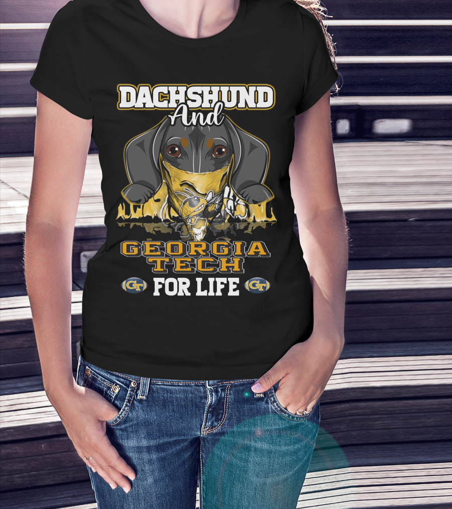 Dachshund And Georgia Tech GT For Life Yellow Jackets T-Shirt