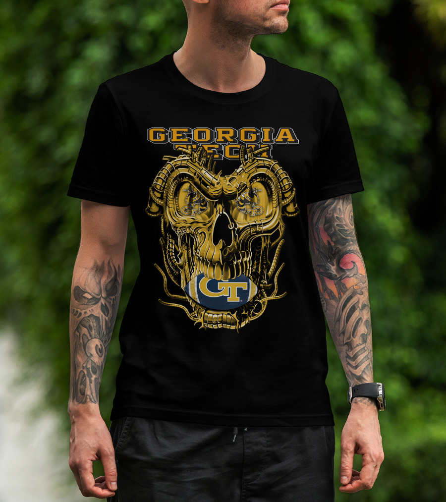 Georgia Tech Yellow Jackets Skull With GT Football And Mechanical Details T-Shirt
