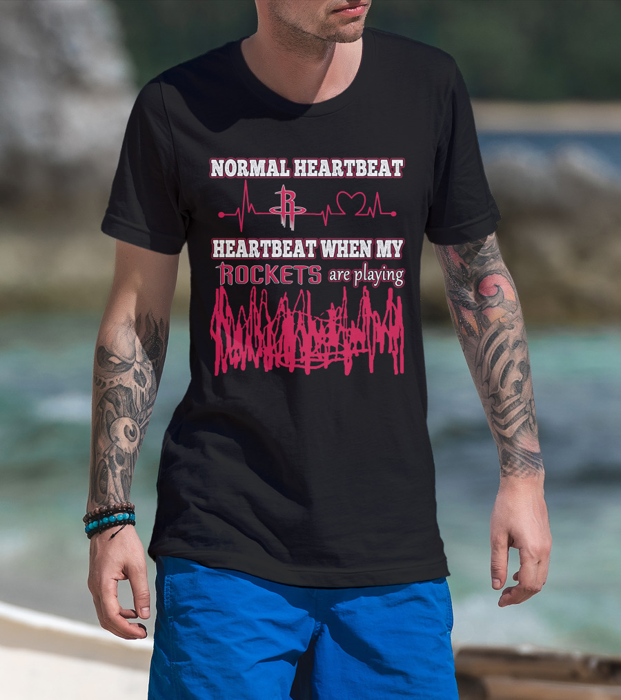The NORMAL HEARTBEAT HEARTBEAT WHEN MY ROCKETS ARE PLAYING T-shirt is designed for everyday wear and a consistent fit. Fabric is pre-shrunk ring-spun cotton with durable stitching. See the size chart below for exact measurements.