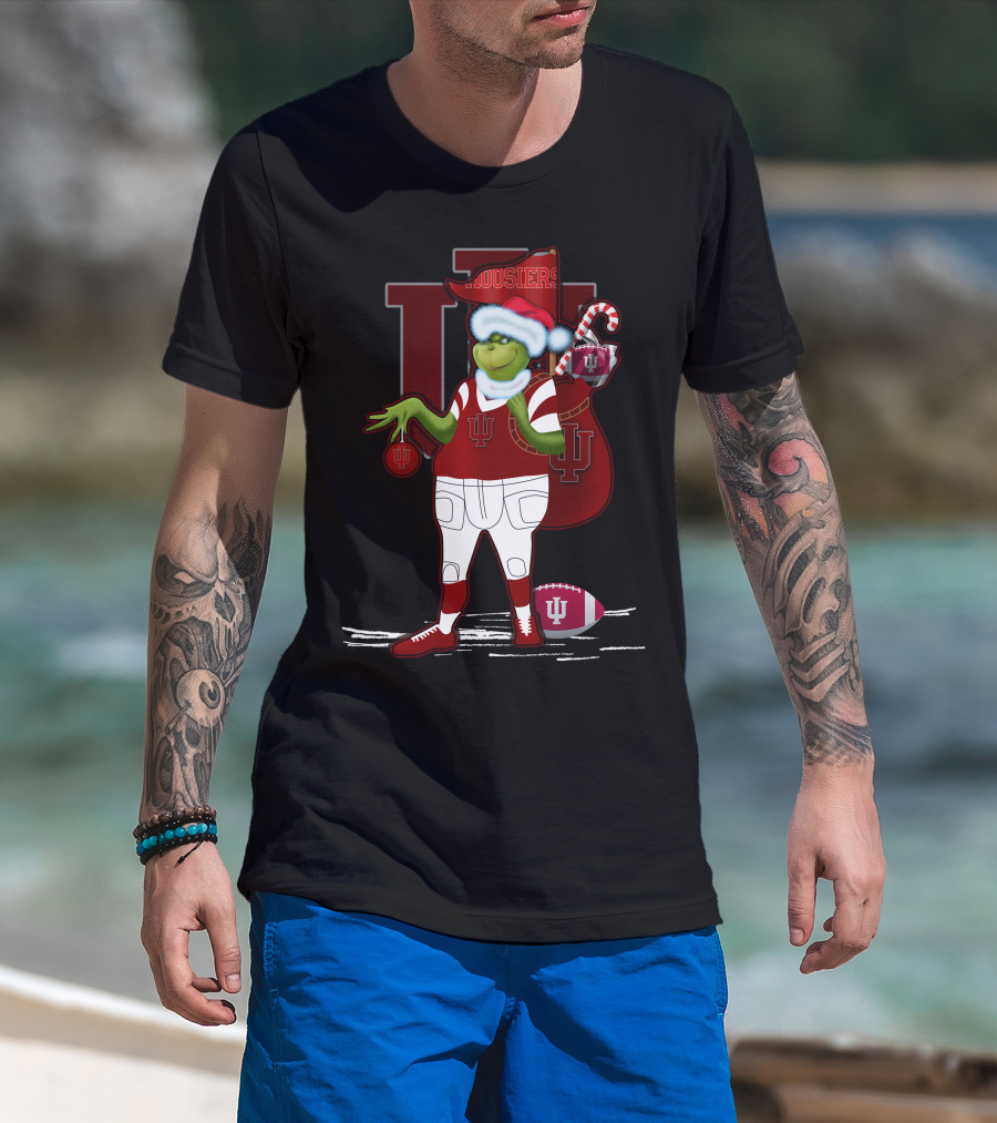 Grinchxmas Indiana Hoosiers Santa Sack Football T-Shirt