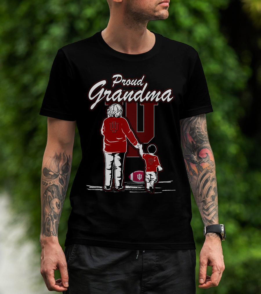 Proud Grandma Indiana Hoosiers IU Logo With Football T-Shirt