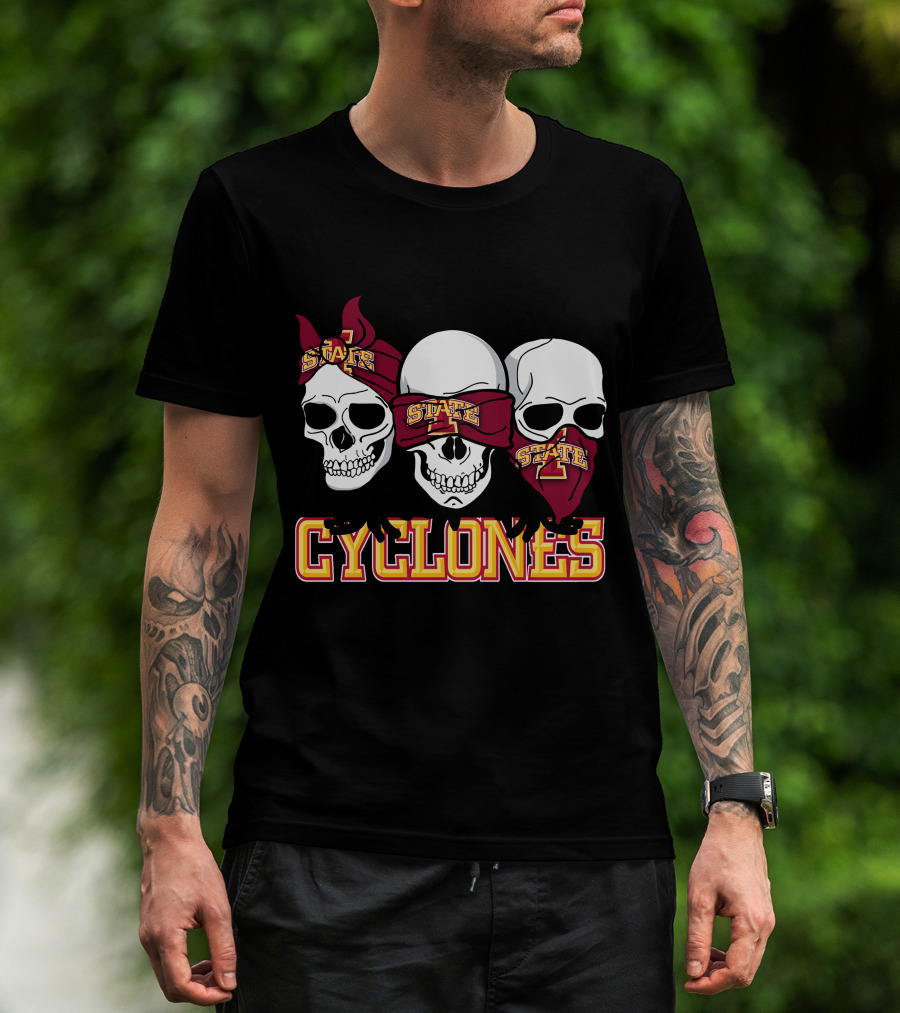 The 3 Skull State Cyclones T-shirt is designed for everyday wear and a consistent fit. Fabric is pre-shrunk ring-spun cotton with durable stitching. See the size chart below for exact measurements.