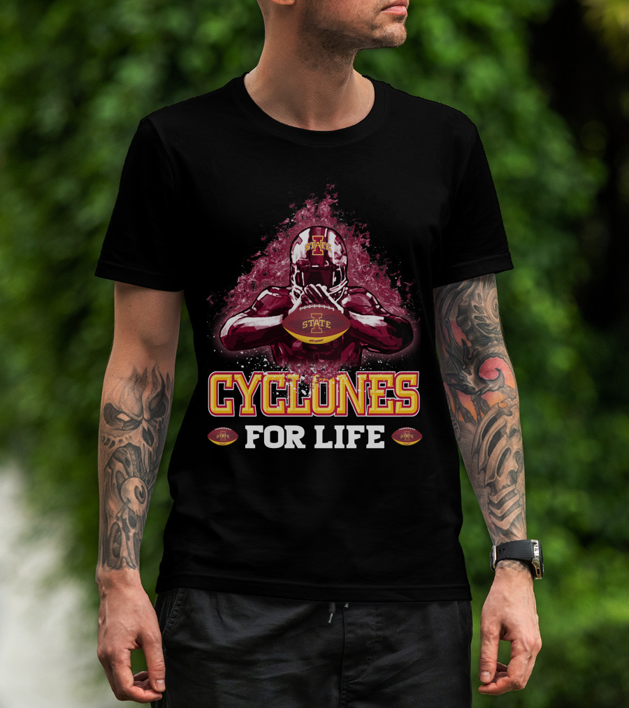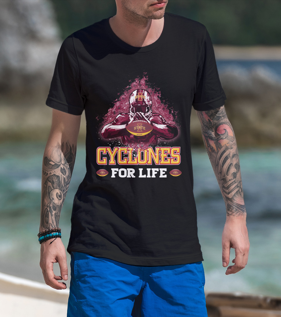 The Iowa State Cyclones Football For Life T-shirt is designed for everyday wear and a consistent fit. Fabric is pre-shrunk ring-spun cotton with durable stitching. See the size chart below for exact measurements.