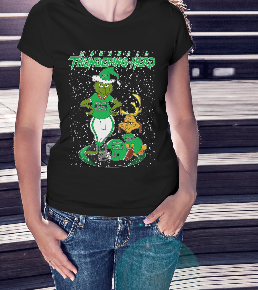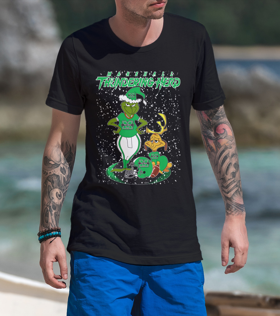 Grinchxmas Marshall Thundering Herd Football Holiday Max Antlers T-Shirt