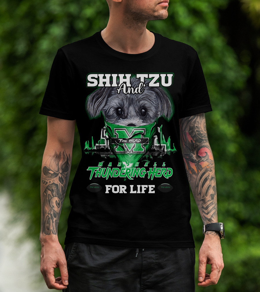 Shih Tzu And Marshall Thundering Herd The Herd For Life T-Shirt