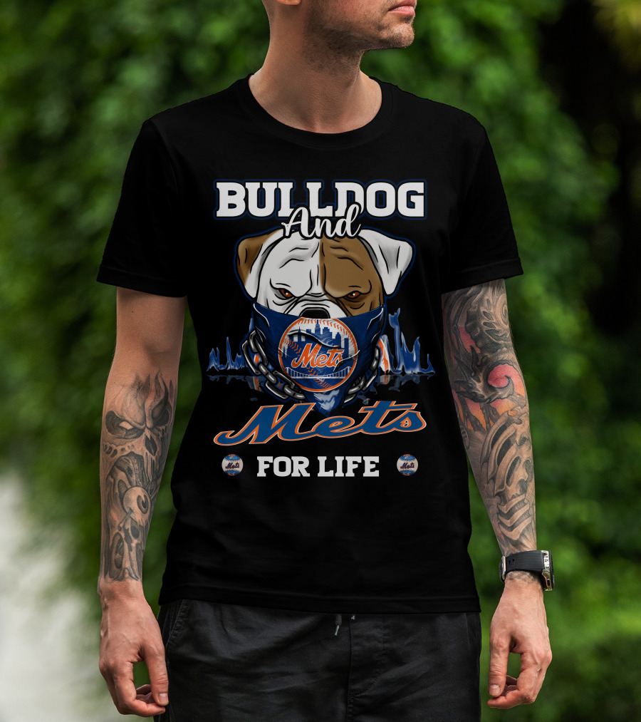 The Bulldog and Mets for Life New York Mets T-shirt is designed for everyday wear and a consistent fit. Fabric is pre-shrunk ring-spun cotton with durable stitching. See the size chart below for exact measurements.