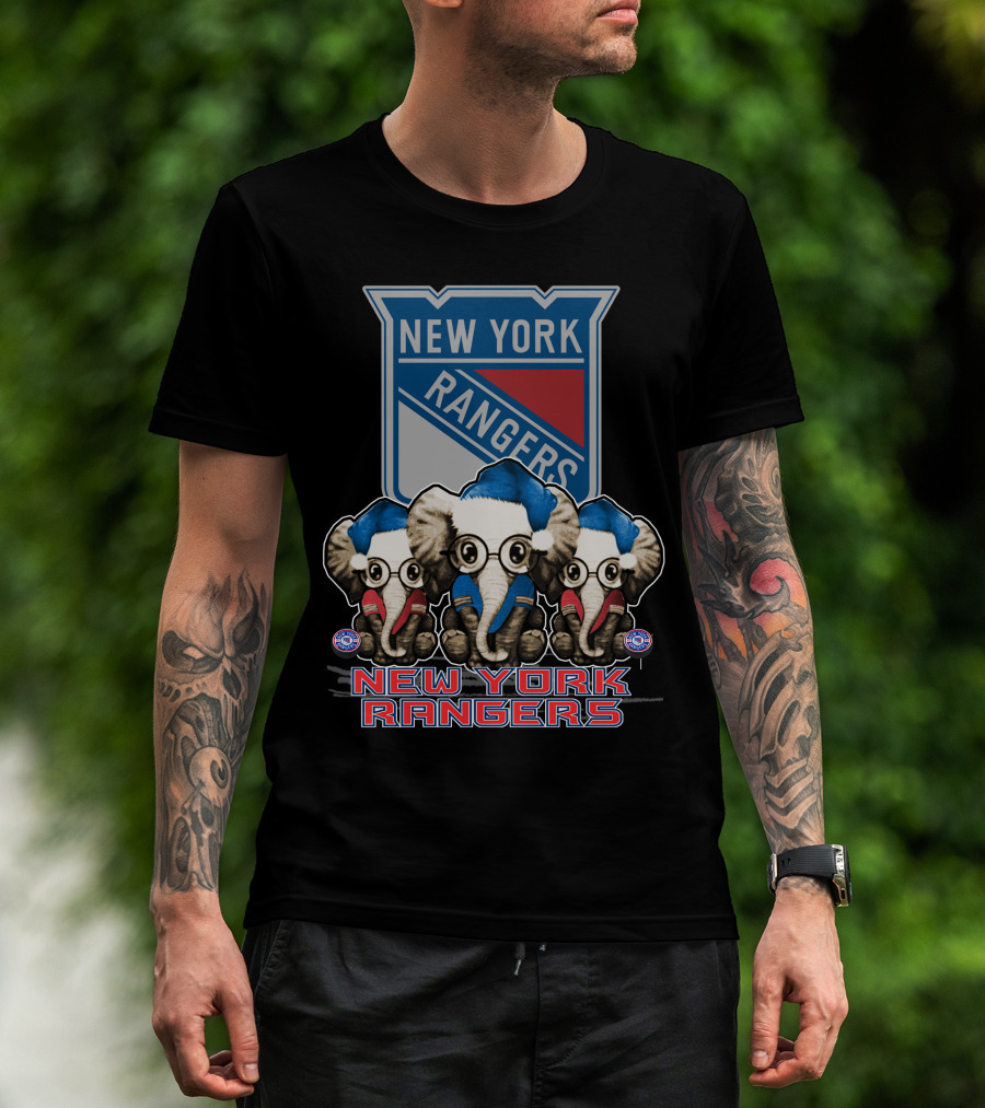 New York Rangers Christmas Elephants In Santa Hats T-Shirt