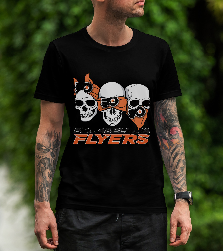 Philadelphia Flyers Three Skull Bandana Motif T-Shirt
