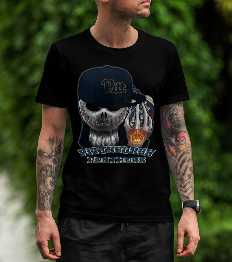 Pittsburgh Panthers Pitt Skull Football Jack O'Lantern T-Shirt