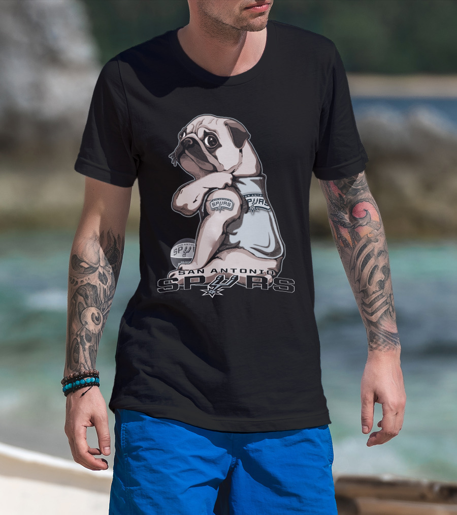 The San Antonio Spurs Pug T-shirt is designed for everyday wear and a consistent fit. Fabric is pre-shrunk ring-spun cotton with durable stitching. See the size chart below for exact measurements.