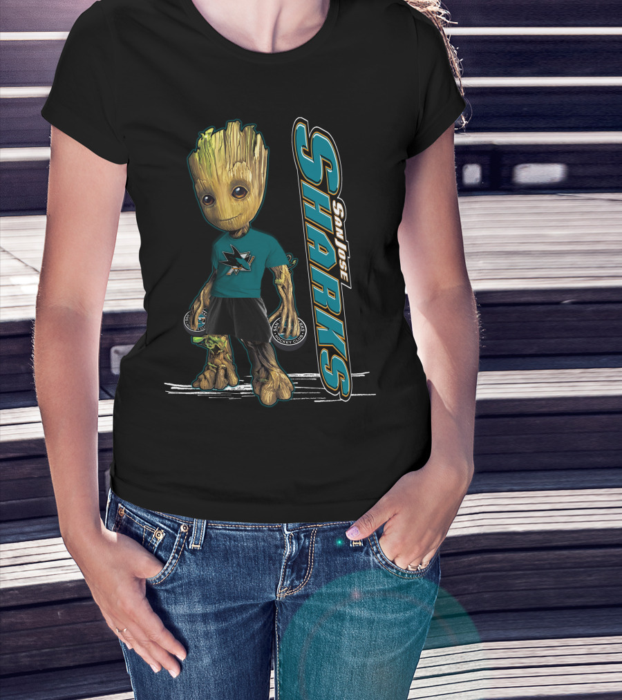 Groot San Jose Sharks Fan Character With Hockey Pucks T-Shirt