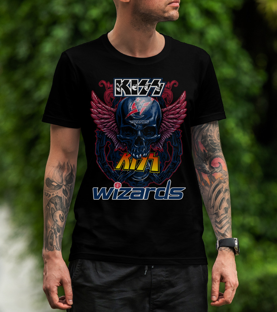 The KISS Washington Wizards Skull Wings T-shirt is designed for everyday wear and a consistent fit. Fabric is pre-shrunk ring-spun cotton with durable stitching. See the size chart below for exact measurements.