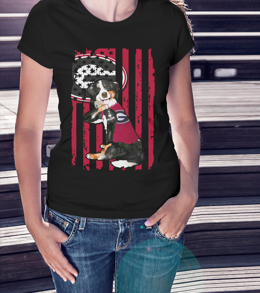 Border Collie I Mom Georgia Bulldogs Stripes T-Shirt