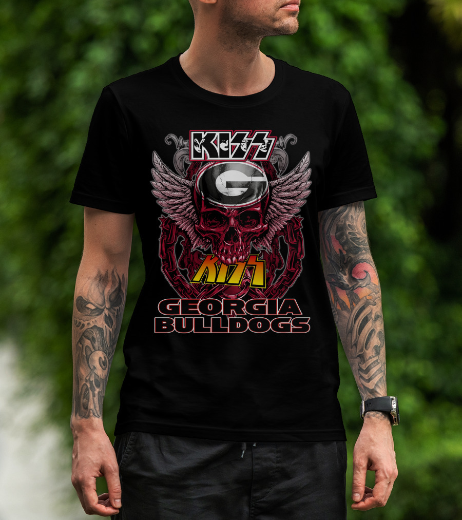 Kiss Georgia Bulldogs Skull Helmet Wings T-Shirt