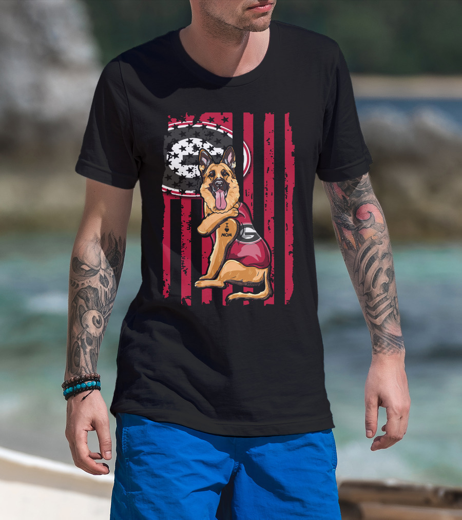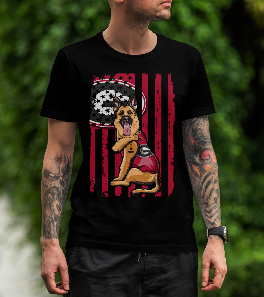 German Shepherd Georgia Bulldogs I Love Mom With Flag Background T-Shirt