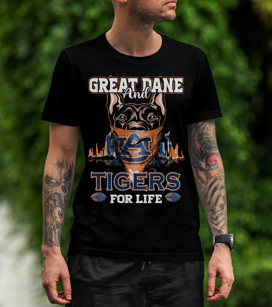 The Great Dane and Auburn Tigers for Life T-shirt is designed for everyday wear and a consistent fit. Fabric is pre-shrunk ring-spun cotton with durable stitching. See the size chart below for exact measurements.