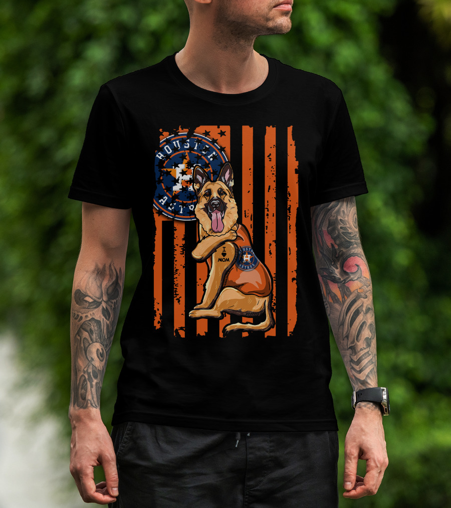 The Houston Astros German Shepherd I Mom T-shirt is designed for everyday wear and a consistent fit. Fabric is pre-shrunk ring-spun cotton with durable stitching. See the size chart below for exact measurements.