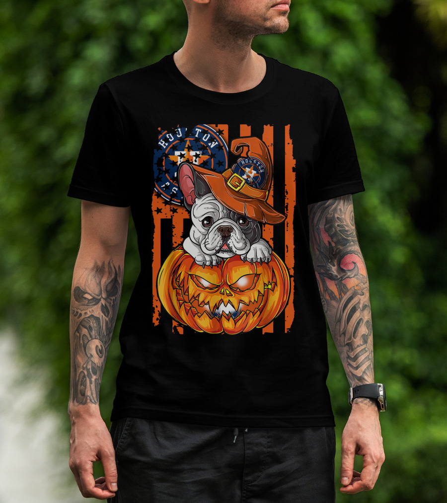 Houston Astros Halloween Bulldog Pumpkin Fan T-Shirt