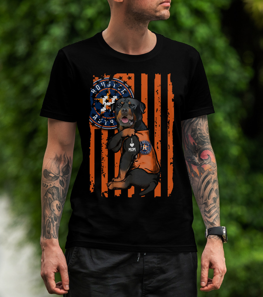 Rottweiler I Love Mom Houston Astros Orange Stripes T-Shirt