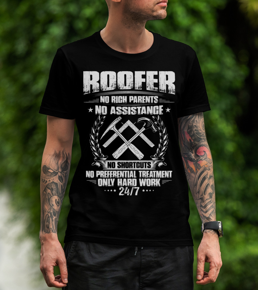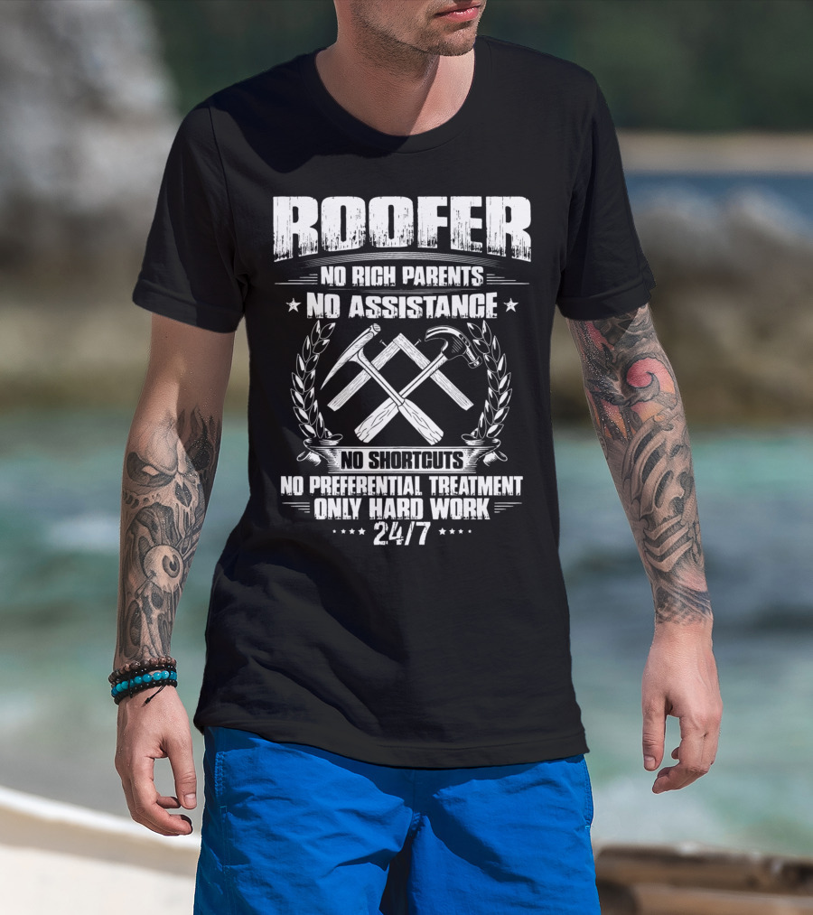 Roofer 24/7 No Rich Parents No Assistance No Shortcuts No Preferential Treatment Only Hard Work T-Shirt